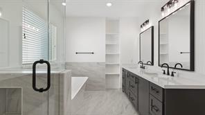 Welcome to Donovan Park, a gated oasis in the heart of Houston. Situated in a vibrant neighborhood, this luxurious development blends comfort, style, and convenience. Steps from top eateries, cultural destinations, and St. Pius X High School, it offers ideal proximity to city life. The home features elegant stone-tiled floors, soaring ceilings, and an open-concept living area with engineered wood floors and custom millwork. The chef-inspired kitchen includes matte hardware, Iron Ore custom-painted cabinets, faux marble quartz countertops, and a central island. A private en-suite bedroom on the first floor provides guest comfort. The third-floor primary suite boasts tray ceilings, a spa-like ensuite with a soaking tub and frameless shower, and custom walk-in closets. Minutes from Downtown, The Galleria, and the Medical Center, Donovan Park offers unmatched convenience for modern Houston living.