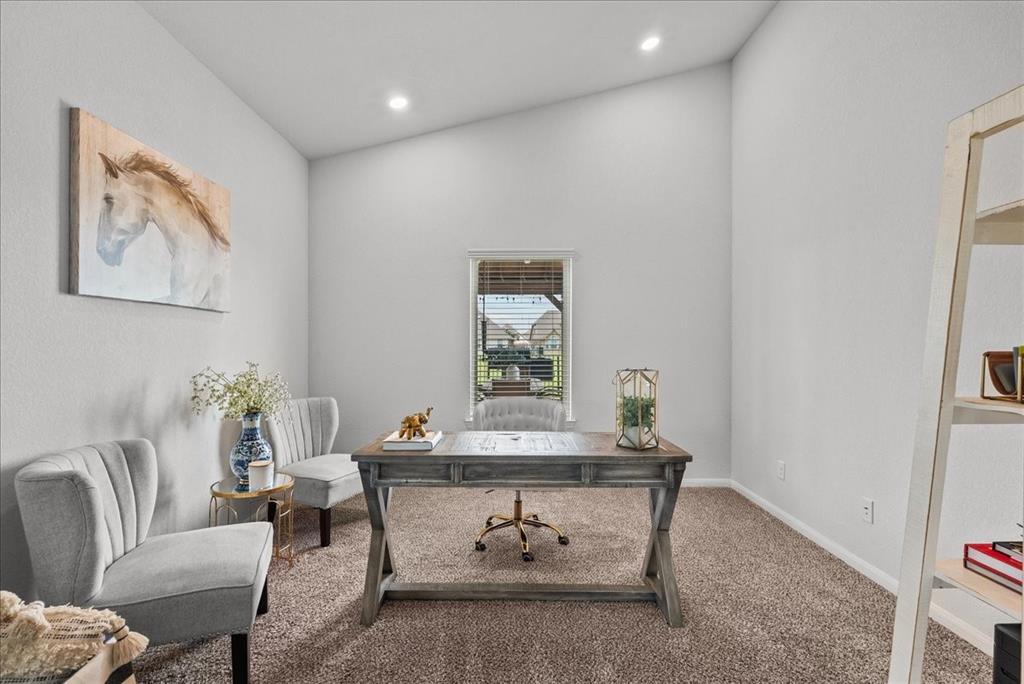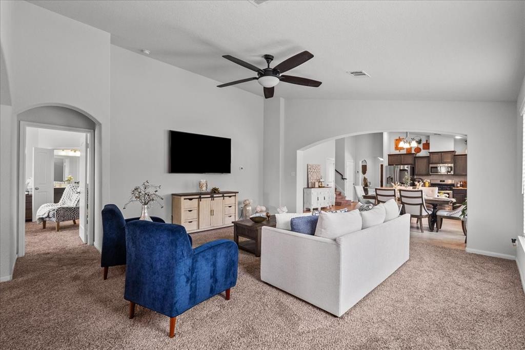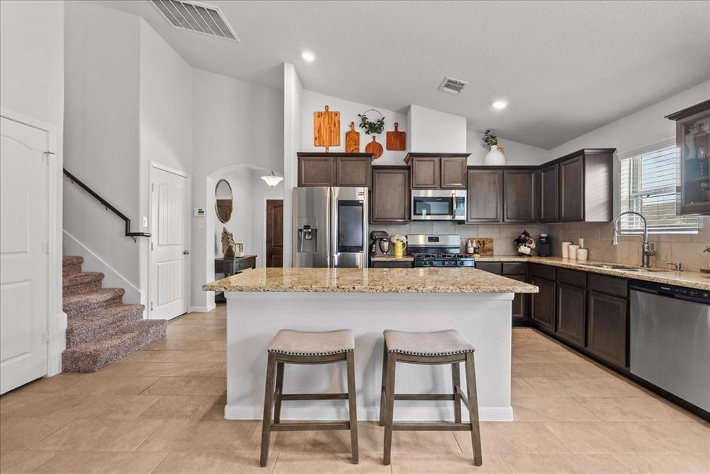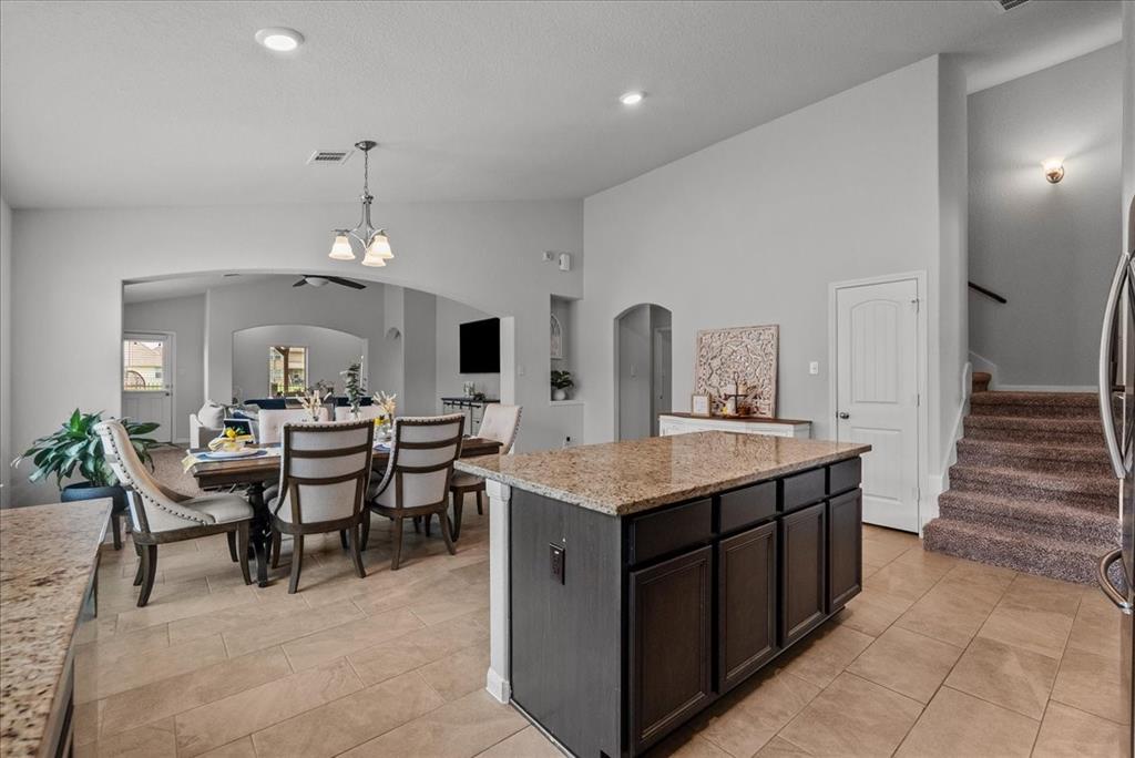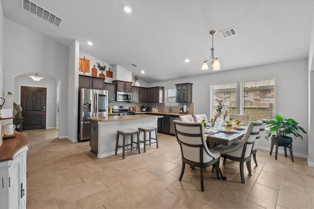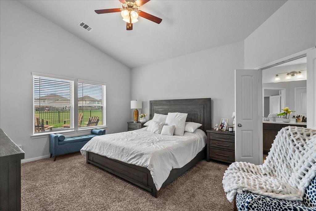 Welcome to 726 Rim Water Drive, a beautifully maintained 1.5-story home with a serene water view in the highly desirable Kendall Lakes community. This 3-bedroom, 3-bath home offers all bedrooms conveniently located on the main floor, including a spacious primary suite with double vanities, a separate shower, and a layout designed for comfort. The open-concept kitchen offers ample cabinet space and flows seamlessly into the bright living and dining areas filled with natural light. Upstairs, a generously sized room can serve as a game room or be easily converted into a 4th bedroom, offering flexibility to suit your needs. Step outside to an added, custom pergola and firepit area, perfectly positioned to overlook the peaceful water—an ideal setting for relaxing evenings or weekend gatherings. Just a short drive to Hwy 288, this home offers easy access to shopping and dining, while providing a quiet, community-centered lifestyle.