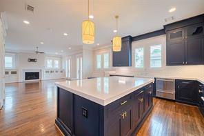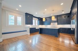 Sophisticated Charm meets Modern Elegance. Fabulous 5–6 BD, 4 BTH home, 3784 sf beautifully crafted living space, set on oversize 6250 sf lot. Features 1st Floor Living, 10' ceilings, reclaimed Red Oak Floors, Custom Cabinetry, stylish Wainscoting, ample Natural Light, Plantation Shutters, Briggs & Stratton Home Generator, Tankless H2O, Reverse Osmosis water, with Flex Rooms to suit most lifestyle needs. Oversize 2 car Garage, Fenced Front and Back Yards, perm holiday lights +much more. Awesome Gourmet Dine-In Kitchen, Huge Center Island, Fisher & Paykel appls, Pro 5' Fridge, Double Range, Quartz counters, Pantry, Breakfast Nook, all open to spacious Living Room w stylish built-ins. Formal Dining, Wine/Bar, Office/Study (or extra BR) & full guest BTH. Upstairs boasts impressive Primary Suite w Vaulted Ceiling, chic Ensuite, WIC, 4 more BRs +2 Ensuite BTHs & Laundry. Covered decks overlook lush yards. Rivals new Construction! Offers comfortable commutes DT, Med Center & beyond.