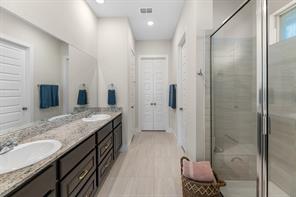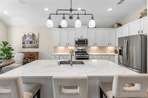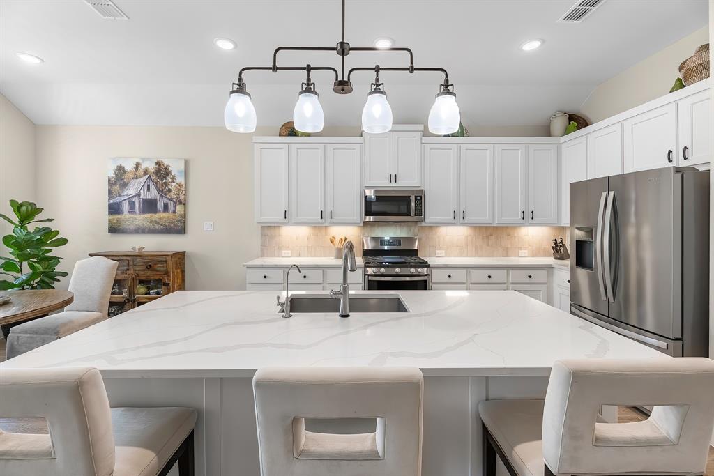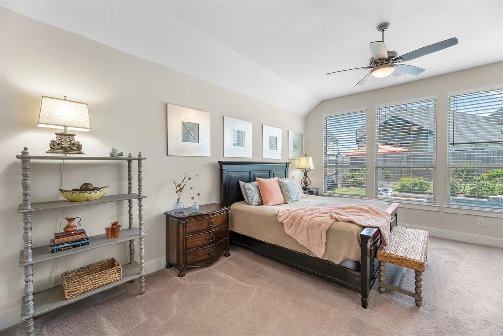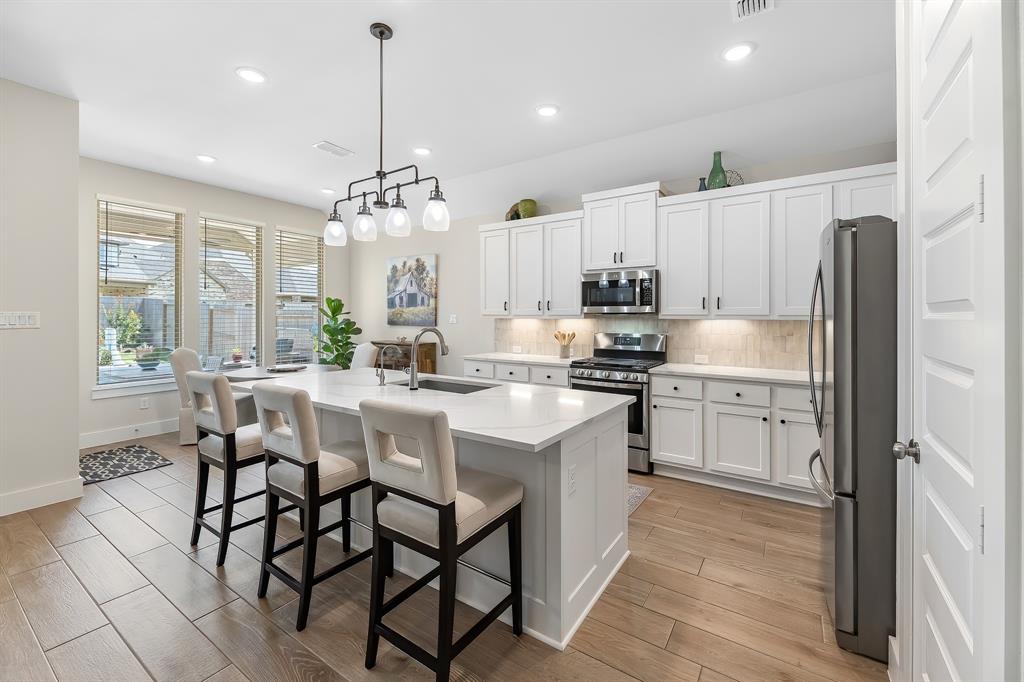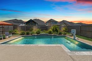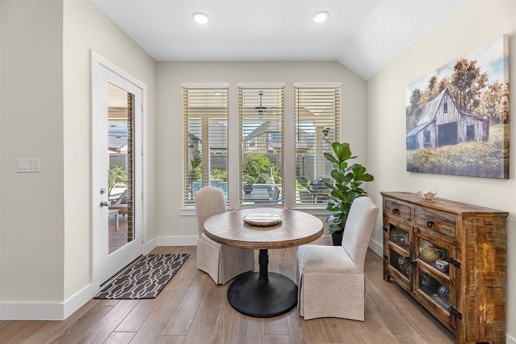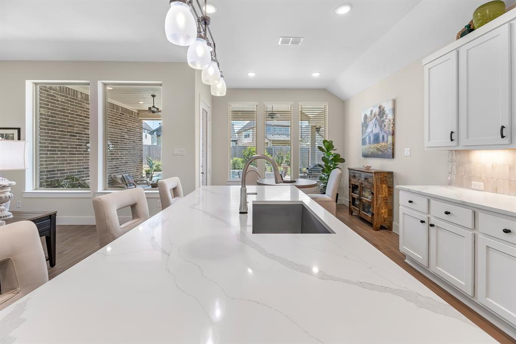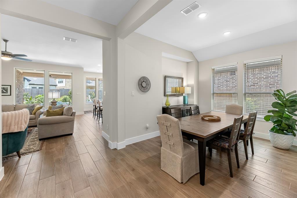Live the resort lifestyle every day! This STUNNING 1-story Tri Pointe gem in Fulshear, built in 2023, offers style and comfort with a beautiful brick front, 3-4BR/2.5BATHS, resort-style pool, and K5 Infinity Water System. Flooded with natural light, this home features a flexible open layout, wood-plank tile floors, soaring ceilings & 8ft doors. TWO secondary rooms plus oversized flex room offers space for entertainment, hobbies, or convert to a 4th bedroom. The bright family room showcases incredible views of the backyard retreat and spacious patio. The gourmet kitchen is packed with modern upgrades—quartz island, white cabinets, and a sunny breakfast nook. The luxurious primary suite features a spa-inspired shower, double sinks, and elegant Grey Wolf cabinetry. Step outside to enjoy a massive covered patio and newer PebbleTec pool—ideal for entertaining or unwinding. Community perks include a gym, trails, lakes, and an amenity center—all within walking or biking distance!
