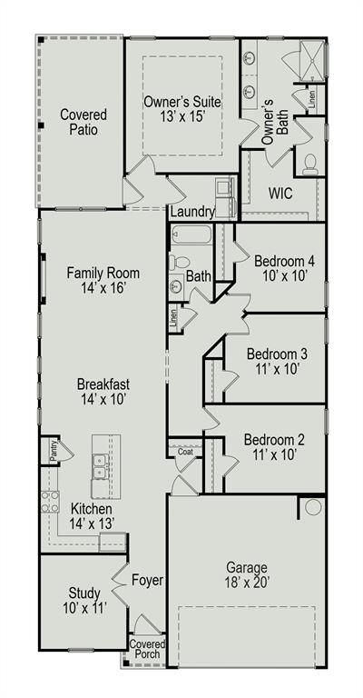 The Oakshire II by Smith Douglas Homes in Trails at Woodhaven Lakes is a 1-story home featuring 4 bedrooms, 2 baths, study at the entry and an open-concept kitchen/dining combo. Highlights include 42” upper kitchen cabinets, granite countertops with an island, an undermount stainless steel sink, and luxury vinyl flooring in main living and wet areas. The primary suite boasts dual vanities and a large walk-in shower. Additional features include a linear fireplace in the family room, a covered patio, and an energy-efficient Tech Shield radiant barrier. AVAILABLE JULY!