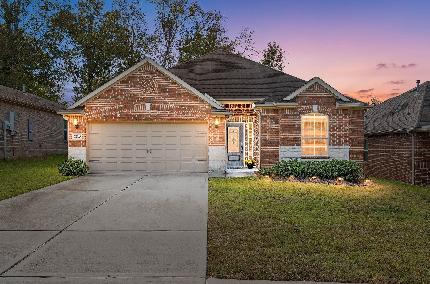 Welcome to this wonderful 2019 ONE STORY 3 bed 2 bath home nestled in Chase Run, Conroe TX. offers a peaceful and cozy home with winter nights relaxing in your hot tub / spa or summers cooling off. Back patio and yard lends itself to entertaining and or watching the game or binging your favorite shows! Well sized yard opens itself to play time or gardening or a covered patio for making memories. Energy efficient dual pane windows/appliances/HVAC. A wonderfully planned neighborhood developed to share a lifestyle where you can enjoy low HOA managed homeownership w/low taxes. Award winning Turner Elementary & Brabham Middle. 1.5 acre park with event pavilion, two playgrounds, and multiple picnic areas, the walking paths, the sparkling pond with fountains, the easy access to I-45 and TX-105. Minutes from The Woodlands Mall shopping, dining, a fun for all! Peace of mind with brick exterior and easy interior maintenance. Hot tub SPA washer, dryer & refrigerator can stay with the home!