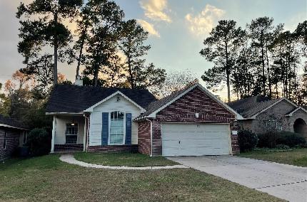 Welcome to this wonderful 2019 ONE STORY 3 bed 2 bath home nestled in Chase Run, Conroe TX. offers a peaceful and cozy home with winter nights relaxing in your hot tub / spa or summers cooling off. Back patio and yard lends itself to entertaining and or watching the game or binging your favorite shows! Well sized yard opens itself to play time or gardening or a covered patio for making memories. Energy efficient dual pane windows/appliances/HVAC. A wonderfully planned neighborhood developed to share a lifestyle where you can enjoy low HOA managed homeownership w/low taxes. Award winning Turner Elementary & Brabham Middle. 1.5 acre park with event pavilion, two playgrounds, and multiple picnic areas, the walking paths, the sparkling pond with fountains, the easy access to I-45 and TX-105. Minutes from The Woodlands Mall shopping, dining, a fun for all! Peace of mind with brick exterior and easy interior maintenance. Hot tub SPA washer, dryer & refrigerator can stay with the home!
