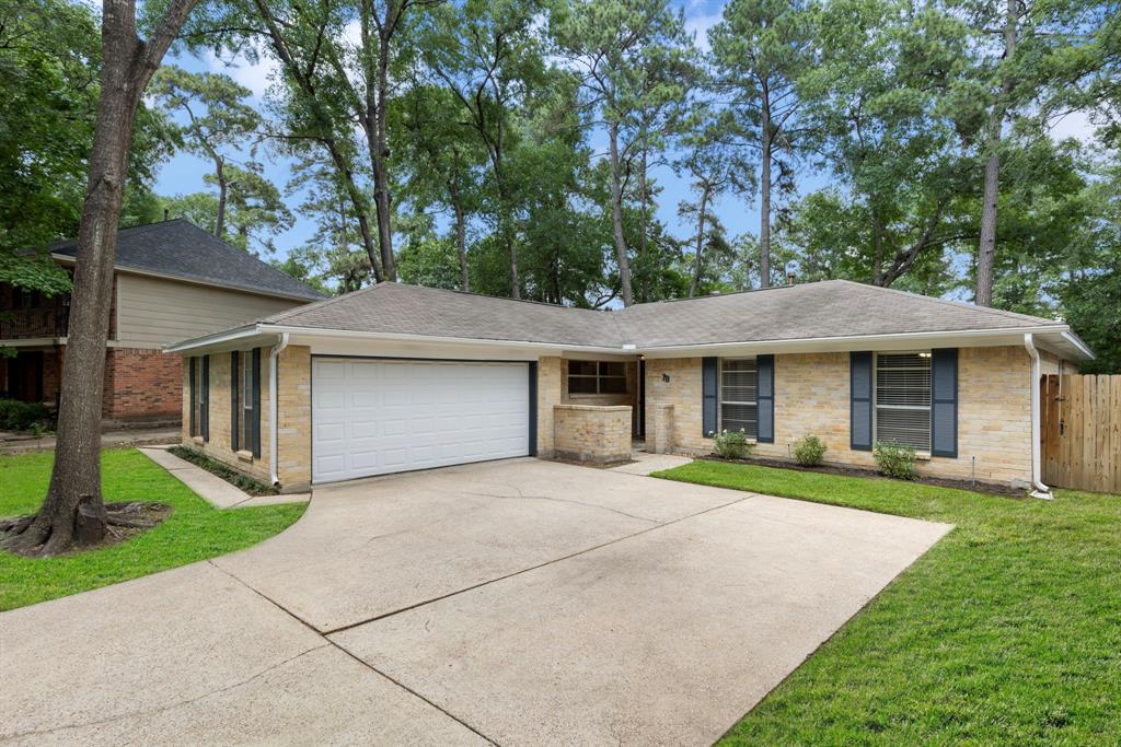 Welcome to this beautifully updated 3-bedroom, 2-bath home nestled in a quiet, tree-lined neighborhood at the front of The Woodlands. Thoughtfully designed with both comfort and style in mind, the home features new luxury vinyl flooring throughout the living, dining, and bedroom areas, creating a seamless and modern look. The spacious living area is centered around a beautiful fireplace, perfect for cozy evenings and relaxed gatherings. The kitchen is a standout with stunning granite countertops and a brand-new double oven—ideal for home chefs and entertainers alike. The large primary suite offers a peaceful retreat, complete with a generous sitting area or office nook and two closets. Additional features include a two-car garage with durable epoxy flooring and a private backyard with no rear neighbors, surrounded by mature trees. Lawn and pest control included. Easy access to I-45, top-rated schools, premier shopping and dining, this home is where comfort meets convenience.