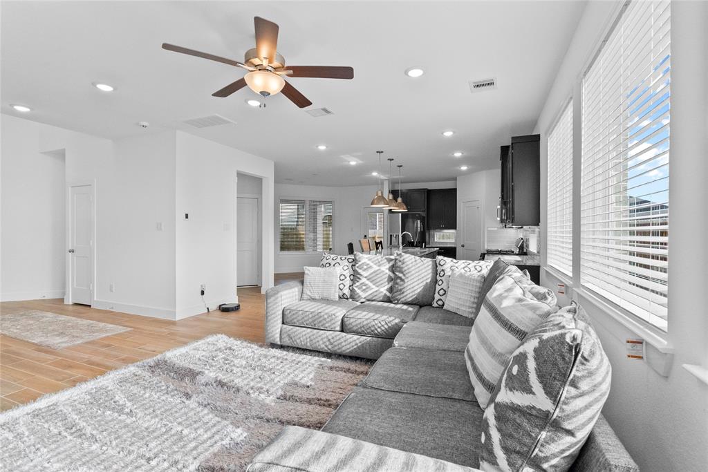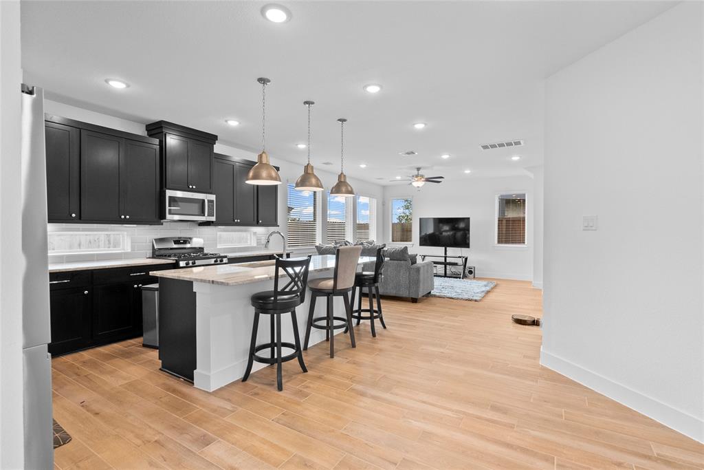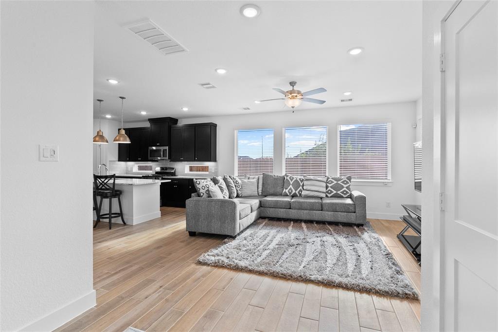 Stunning new 4 bedroom home is a must see! Featuring spacious dining area and kitchen offering 42" cabinets, quartz countertops, w/oversized island great for entertaining and cooking w/friends and family. Stainless steel over/range, microwave and dishwasher, and blinds. Refrigerator, washer and dryer in the home. Conveniently located close to parks, hike and bike trails, new REC center w/fitness center, lap pool and full size pool and so much more!
