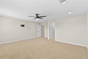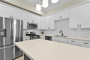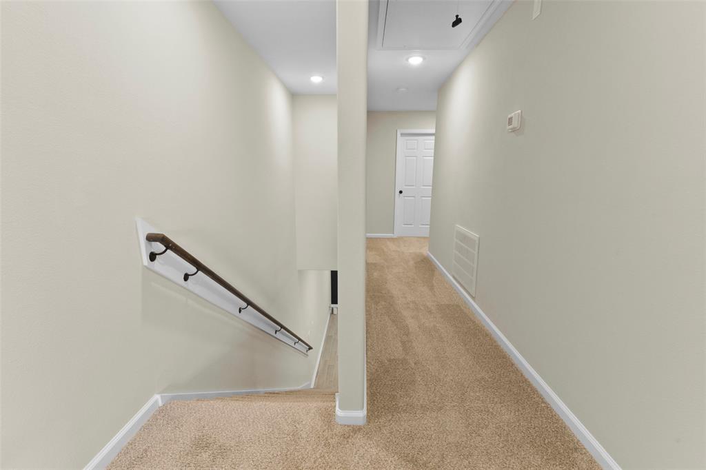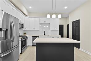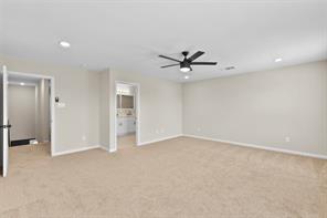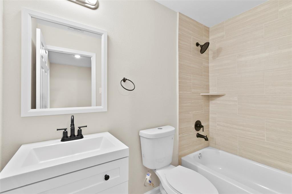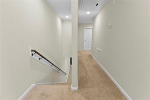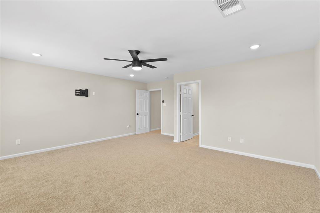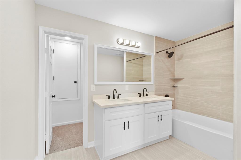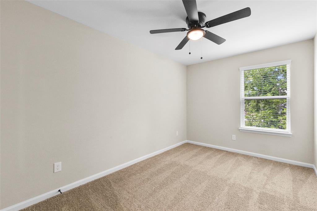 Welcome to your new home! This stylish 3-bedroom, 2.5-bathroom two-story rental features a smart layout and high-end finishes throughout. Downstairs offers a convenient half bath and an open-concept living area with no carpet, a dark gray accent wall, and a mounted TV. The modern kitchen shines with white cabinets, black hardware, stainless steel appliances, and recessed lighting. Upstairs, all bedrooms have plush carpet and ceiling fans. The spacious primary suite includes a mounted TV, double vanity, and walk-in closet. A full-size Samsung washer and dryer are located in the second-floor laundry room. With a two-car garage and thoughtful upgrades, this move-in-ready home has everything you need.