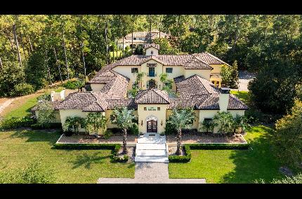 HOME HAS NEVER FLOODED! Spectacular custom home with panoramic views of the 2nd hole of the Kings Golf Course from nearly every room! Situated on over an acre in Cochran's Crossing w/close proximity to the Palmer Country Club, this 7 bedroom home features a circular drive, 5 car garage w/epoxy floor, impressive ceiling heights, plantation shutters, hardwood & travertine floors, & enormous windows that provide verdant fairway views throughout. An open and airy chef's kitchen with 3 pantries, extended breakfast bar, 2 dishwashers and double ovens makes for effortless entertaining, and overlooks the breakfast room and den; study w/French doors; both formals; owner's retreat & 2nd bedroom suite down; game room, media room, & 5 bedrooms upstairs (4 are oversized w/walk-in closets & share 2 Hollywood baths, 1 has an en-suite bath); your backyard paradise awaits with a timelessly elegant pool & spa, outdoor kitchen & fireplace, mosquito system, & gorgeous landscaping enhanced w/lighting.