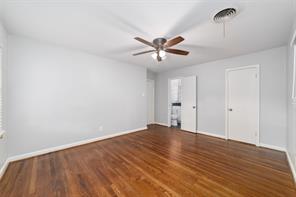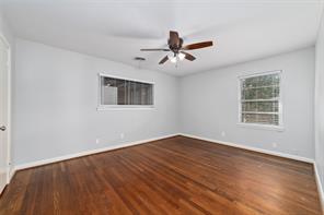 This charming home offers a warm, inviting atmosphere upon entry, original wood floors, a roomy kitchen with granite countertops and a spacious floor plan. Updated kitchen featuring a walk-in pantry and open to a breakfast area with large windows overlooking the backyard and covered patio, perfect for outdoor gatherings. The formal dining area could also be used as a study and includes built-in cabinets and shelving. A private primary bedroom suite features a walk-in closet and an updated ensuite bathroom with subway tile, granite counters, and modern fixtures. Down the hall, two spacious guest bedrooms provide ample closet space and share a renovated bathroom. The 4th bedroom is connected through the sizable utility room and offers large windows, a private exterior entrance, plus a full bathroom.