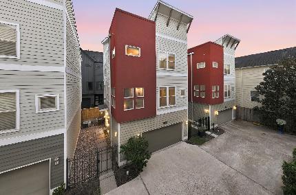 Beautiful freestanding townhome on a corner lot in a gated community, perfectly located minutes from Downtown, Memorial Park, Galleria, I-10, 610, 290, and top restaurants. This spacious home offers 4 bedrooms, 4.5 bathrooms, a game room, top-floor balcony, private backyard, and an incredible 4th-floor terrace complete with a pool bathroom and secondary bedroom—perfect for entertaining or hosting guests. High ceilings in the living area bring in abundant natural light, flowing into a gourmet kitchen with breakfast bar and designated dining space. Hardwood floors extend throughout the main living areas, adding warmth and elegance. The oversized primary suite features double sinks, a free-standing tub, spacious shower, and large walk-in closet. Community amenities include a dog park, pergola gathering area with fountain and fireplace, plus ample guest parking. Don’t miss this rare opportunity to own a private retreat with modern comfort in the heart of the city.