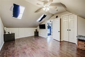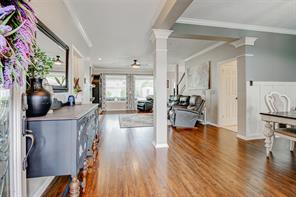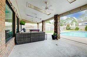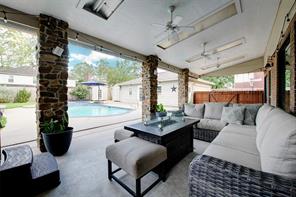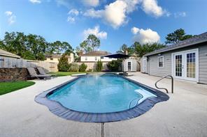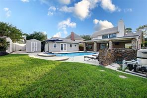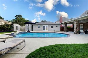 Tucked away on a quiet cul-de-sac in the heart of Clear Lake’s Bay Knoll neighborhood, this beautifully updated home blends comfort, style, and thoughtful upgrades. The kitchen opens to a sunny breakfast area and features ceramic tile flooring, granite counters, travertine backsplash, copper farmhouse sink, and stainless appliances (2018) including convection oven/microwave. Spacious living room is anchored by a gas log fireplace and boasts wood laminate floors and oversized windows that fill the space with natural light. The serene primary offers 2 walk-in closets and luxurious bath with dual sinks and glass block walk-in shower. Key upgrades include new roof (2019), two AC units (2020), storm-rated windows (2022), Pentair pool equipment (2022), and Generac whole-home generator (2023) for peace of mind. Outside, enjoy your private backyard oasis with a sparkling pool (re-plastered 2018), separate hot tub, covered patio with ceiling fans and lighting, and 3 exterior storage buildings.