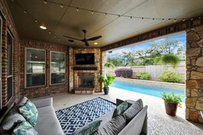 Welcome home to this highly sought after 1.5 story GEM where all the bedrooms are conveniently located on the main level. Nestled in Fairway Crossing, a prestigious GATED section of Fall Creek, this home exudes elegance and comfort at every turn. Beautiful engineered HARDWOOD floors flow through the open-concept living spaces, complemented by designer style light fixtures and a striking CAST stone fireplace anchors the living room. Chef's kitchen features an ISLAND, SS appliances, plenty of cabinet space, under cabinet lighting and more! EXPANSIVE primary suite with a cozy sitting area and a massive WALK-IN closet. Spacious GAME ROOM upstairs. Step outside to your personal BACKYARD OASIS complete with a covered PATIO, OUTDOOR FIREPLACE, OUTDOOR KITCHEN and SPARKLING POOL/SPA that creates the perfect setting for relaxing or entertaining! Enjoy the outdoors YEAR ROUND with this exceptional setup! 3 CAR Garage. TURF on one side of backyard. LINK FOR VIDEO TOUR. SEE IT TODAY!