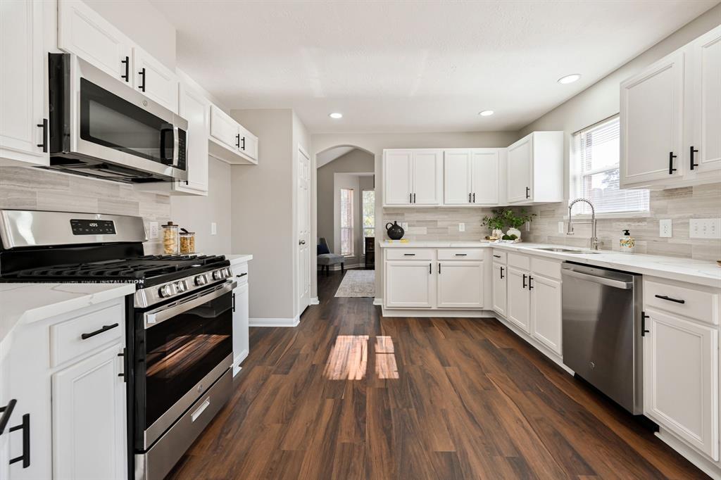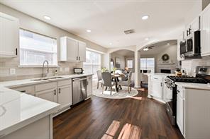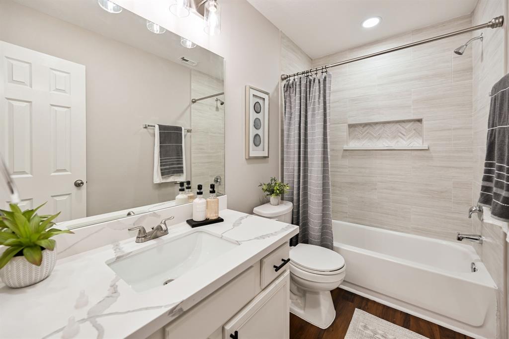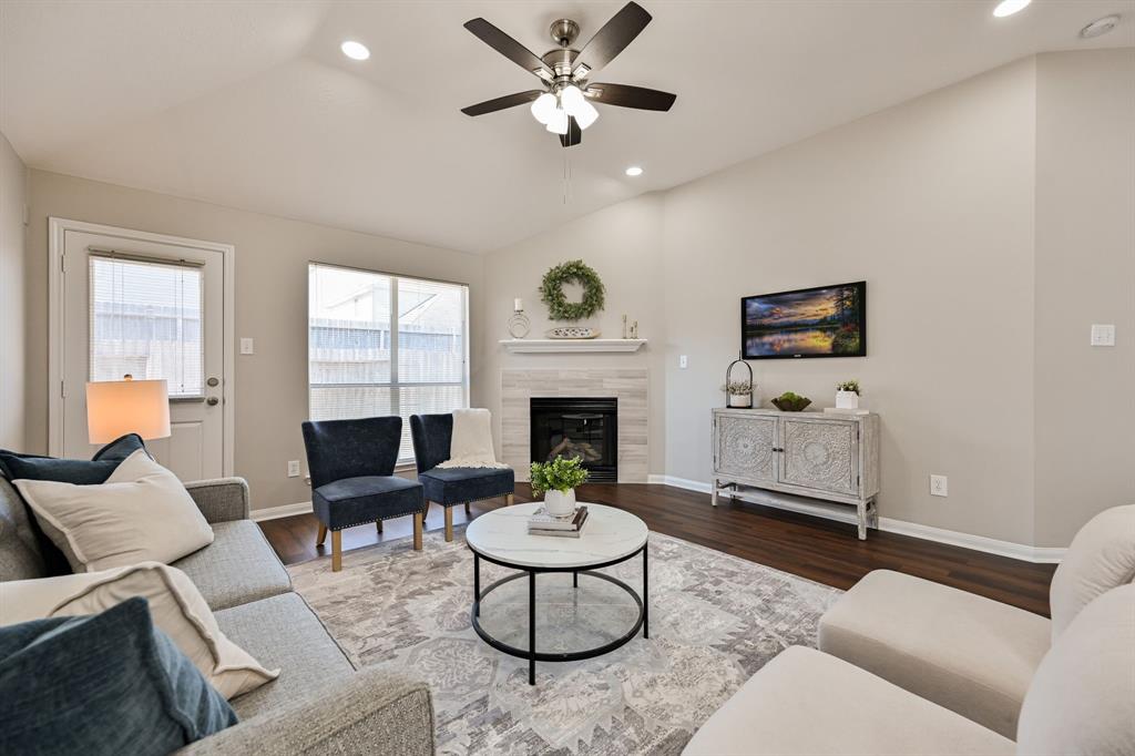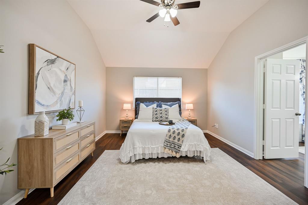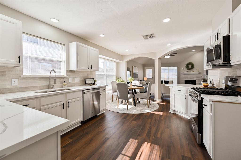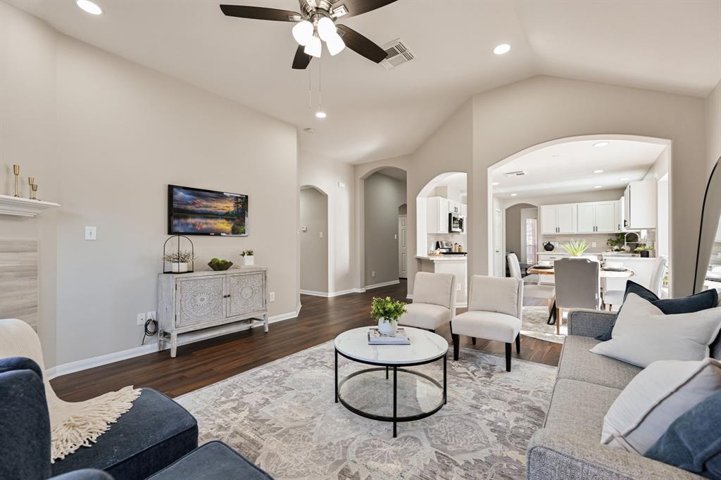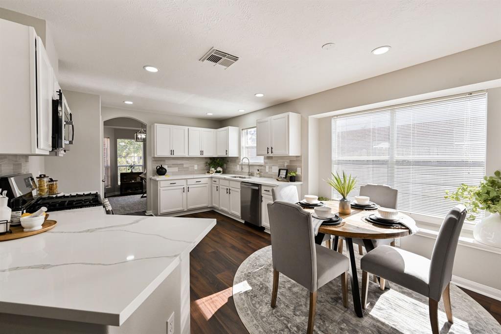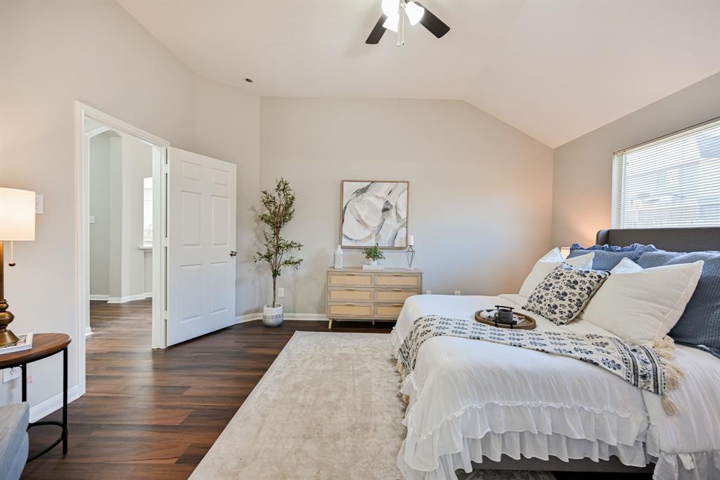 Welcome home to Rosa Del Villa Court! Located on a cul-de-sac in the quaint Rio Vista neighborhood, conveniently near local shopping and dining. Upon arrival, you're welcomed by well kept landscaping and curb appeal. Walk in to the grand entry hall and appreciate how tastefully updated the home is throughout with new flooring and fresh paint. Use the spacious front room as a formal dining room, office, or flex space. The kitchen boasts beautiful white cabinets, quartz counters, stainless steel appliances, and a breakfast nook to make for a homey space. With the kitchen being open to the living room, it makes for a great place to entertain all of your guests! The primary bedroom is tucked away by itself along with the updated en suite primary bathroom. Out back, enjoy the serene backyard with a large patio and NO direct backdoor neighbors. This home is truly a gem!