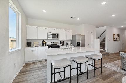 Charming 3-bedroom, 2.5-bath home with an inviting open floor plan! Recently refreshed with new light fixtures, laminate flooring throughout (no carpet!), and fresh paint with stylish wallpaper accents, this home perfectly blends comfort and modern appeal. The kitchen overlooks the living room, creating a natural flow for everyday living and entertaining. Step outside and enjoy a spacious backyard, perfect for weekend barbecues, gardening, or simply relaxing outdoors. Located just minutes from shopping, dining, and with easy access to I-45, this home offers both comfort and convenience. A wonderful opportunity to own a move-in-ready home with room to grow. Schedule your showing today!