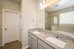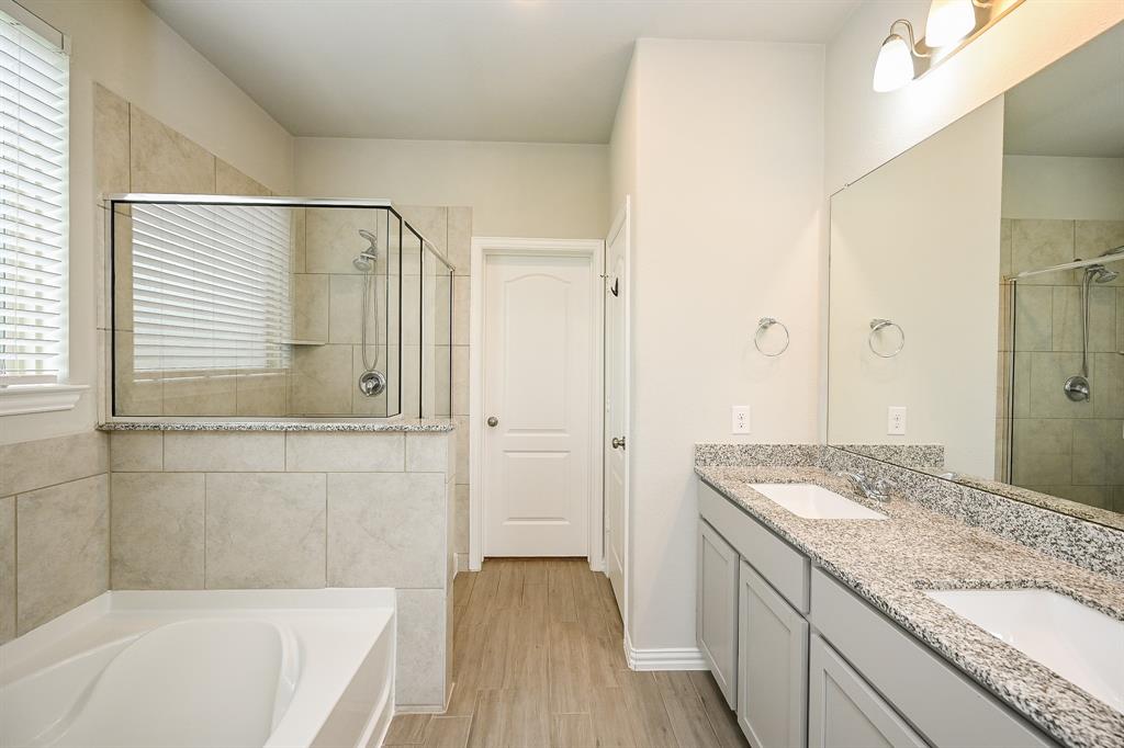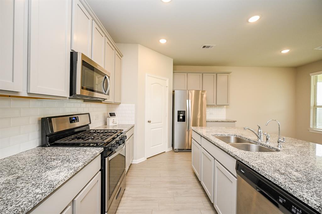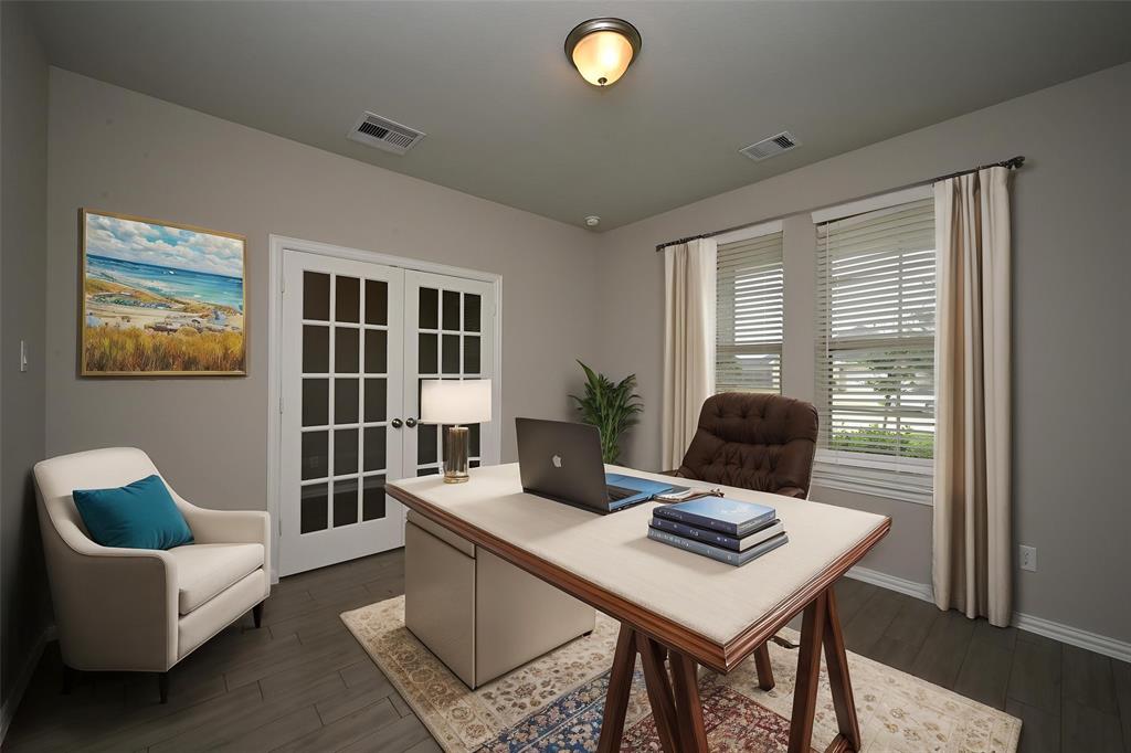 Wonderful location at end of the culdesac! Popular 2-story home on oversized lot with no neighbors directly behind you. Open concept with low maintenance "wood look" tile throughout the first floor living areas. Island kitchen overlooking the Family Room with views of the backyard. Beautiful entry with Study (or could be 5th bedroom w/closet)) with French doors and views of the covered front porch. Features include granite island kitchen with 42" cabinets. Granite in all bathrooms. Whirlpool brand appliances, tankless water heater, full irrigation system, home automated system powered by Google. Covered back patio has gas hook up for outdoor grilling. Primary bathroom offers. large soaking tub and shower. This beautifully maintained home is a fabulous find!! Shows like a model.