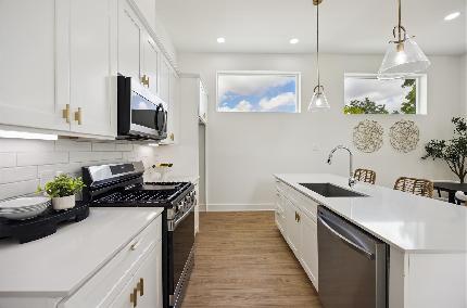 This stunning 3-bedroom, 3.5-bathroom home combines modern design with timeless comfort and abundant natural light throughout. NO CARPET in common areas or stairs for easy maintenance. The gourmet kitchen features stainless steel appliances, elegant cabinetry, and sleek finishes — perfect for cooking and entertaining. The open-concept layout offers effortless flow and functionality. Upstairs, enjoy a private primary suite with a spa-inspired en-suite bathroom, featuring double vanities, TWO shower heads, and a spacious walk-in closet. Move-in ready and available for rent! Schedule your private tour today.