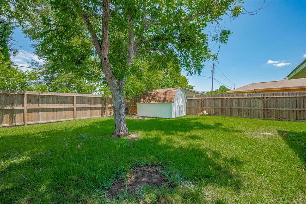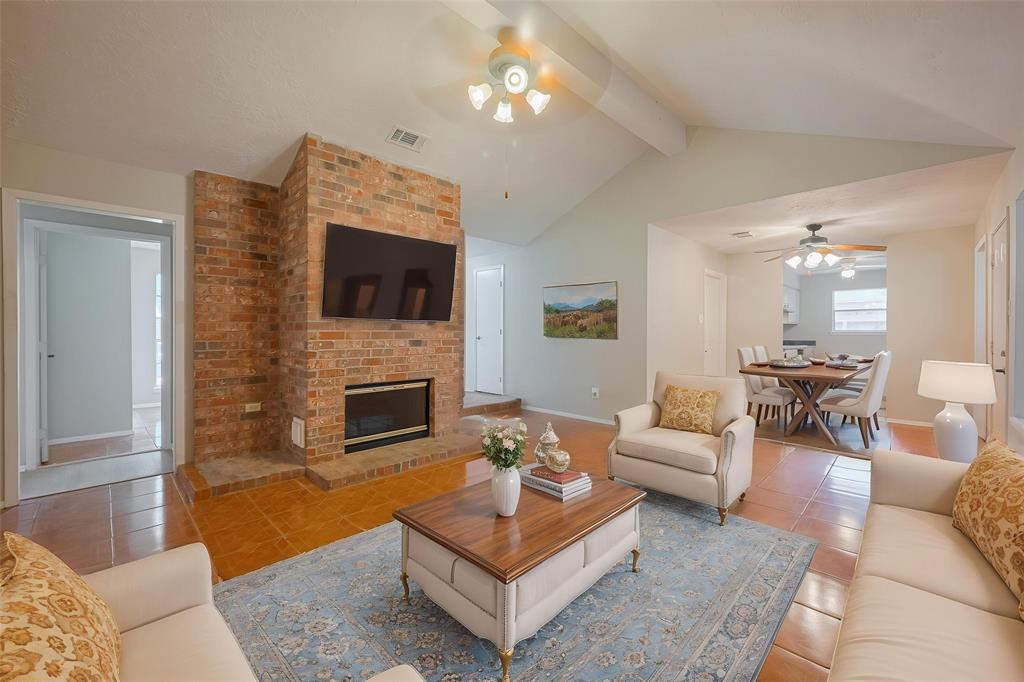 Welcome to this beautiful move-in ready home nestled in a peaceful community near parks, shopping, and dining! Step inside to discover a bright, open layout with no carpet throughout and plenty of living space to spread out and enjoy. The spacious living room features a stunning floor-to-ceiling brick fireplace, creating a warm and inviting atmosphere. The kitchen is both stylish and functional with pristine white cabinetry, ample counter space, a pantry, and both a breakfast nook and formal dining area—perfect for everyday living and entertaining. The primary suite is a private retreat with a cozy sitting area, ensuite bath, and a generous walk-in closet. Additional bedrooms are spacious and versatile, easily adaptable to your needs—whether for guests, a home office or hobbies. Outside, you’ll find a fully fenced yard with lush green space, a covered patio ideal for relaxing and a storage shed for added convenience. This charming home offers comfort, style, and an unbeatable location!