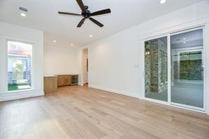 This modern craftsman home perfectly blends with contemporary design. Nestled on a 1.5-acre tree-lined cul-de-sac lot, it offers ample space for entertaining and family fun while ensuring privacy. A vaulted ceiling with stained beams flows from the open family room, featuring a wood-burning fireplace, onto a rear covered patio. Engineered wood floors grace the main living areas and primary suite, complemented by craftsman trim details throughout. The gourmet kitchen boasts high-end appliances, a spacious pantry with floating shelves, and a cozy morning porch for coffee. The private primary suite includes a dual vanity bath, a freestanding tub, a walk-around shower, and dual closets. Each bedroom has an en-suite bath, and the study provides a comfortable workspace. The game room, equipped with a wet bar and fridge, opens to the expansive covered patio, perfect for gatherings. Versatile and stylish, this home offers ideal spaces for both work and play.