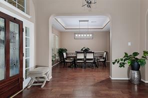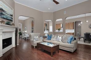 Beautiful one-story home in Alden Bridge with a sparkling pool, outdoor kitchen, and peaceful wooded surroundings! This 4-bed, 3-bath home offers 3,212 sq ft of well-designed living space with rich hardwood flooring, tall ceilings, and an open-concept layout. The island kitchen features granite countertops, updated appliances, and ample cabinet storage. The spacious living room has a wall of windows for natural light and a cozy gas-log fireplace. Retreat to the large primary suite with backyard views and a spa-like bath. Outside, enjoy a private backyard oasis with a pool (new pump & motor in 2025), stone patio, new lighting/fans, a built-in grill, mini fridge, covered seating & no rear neighbors! Additional updates include a new driveway (2020), touchless faucets (2020), and recent fence replacements (2024/2025). New HVAC service in 2025. Zoned to top-rated schools and minutes from parks and shopping.