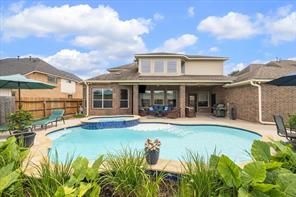 Tucked away on a premium lot with no back neighbors, this stunning 4-bed, 3.5-bath home blends privacy, style & versatility. A grand entry welcomes you with soaring ceilings, hardwood floors & elegant touches like plantation shutters in formal dining & study. The study—already plumbed—offers potential as a 5th bedroom, wellness room, or wine/bar room. Open kitchen & living area create the perfect space for gathering. The primary suite boasts a sitting area with serene backyard views, dual closets, garden tub & separate shower. Upstairs features 3 spacious bedrooms, 2 full baths, game room & media room for endless fun. Step outside to your backyard retreat with a sparkling pool & fire pit area—ideal for entertaining or unwinding. The additional detached garage, also plumbed, is ready to become a man cave, she shed, art studio, or guest suite. This home offers the ultimate blend of comfort, function & resort-style living. Zoned to great schools & all the great Sienna amenities!
