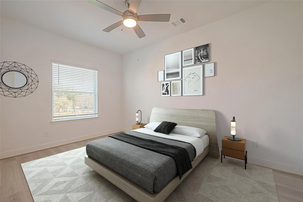 This residence has 3 bedrooms, 2 full and one ½ bath, and a 2-car garage. This floorplan is designed for entertaining with its true open concept design. Beautifully laid-out floorplan, high ceilings, large closets, and a covered patio. Featuring a large primary en-suite, the primary bath is generously sized for the spa-like experience, including a classic soaking tub and a seamless glass-enclosed shower. Conveniently located on the 2nd floor is the laundry room! Come experience for yourself the beautiful design from Colina Homes. Ready now.