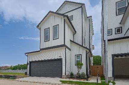 1st FLOOR LIVING! This amazing 3-story residence has 3 bedrooms, 2 Full and 1½ baths, 2 Flex Spaces and extended 2-car garage. This floorplan is designed for entertaining with it’s true open concept design. Beautifully laid out floorplan, high ceilings, large closets, and a covered patio overlooking the yard. The entire 2nd floor features a flex space, and a large Primary En-suite. The Primary bath is generously sized for a spa-like experience including a free-standing antique style soaking tub overlooked by its large walk-in tile shower. The huge dual sided closet conveniently opens to the 2nd floor laundry room! Additional features include exterior gas grill connection, ceiling fans in all rooms, 2” blinds, vinyl wood plank throughout. Just minutes to City Centre and Memorial City Convenient guest parking is available in the community, enjoy easy access to I-10, Beltway 8, 610 Loop, & Hwy 290, 25 minutes to Downtown Houston. WATER AND TRASH INCLUDED W/ HOA! NICE YARD W/ SOD!