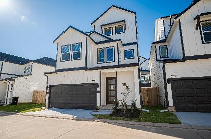 READY NOW! This floorplan is designed for entertaining with it’s true open concept design. Beautifully laid out floorplan, high ceilings, large closets, and an extra wide covered patio overlooking the yard. The entire 2nd floor features a flex space, and a large Primary En-suite. The Primary bath is generously sized for the spa like experience including a free-standing antique style soaking tub overlooked by its large walk-in tile shower. The huge dual sided closet conveniently opens to the 2nd floor laundry room! Additional features include exterior gas grill connection, wired for a car charger, ceiling fans in all rooms, 2” blinds, vinyl wood plank throughout. Just minutes to City Centre and Memorial City Convenient guest parking is available in the community, enjoy easy access to I-10, Beltway 8, 610 Loop, & Hwy 290, 25 minutes to Downtown Houston. WATER/TRASH INCLUDED IN HOA! YARD W/ SOD! Photos are representative.