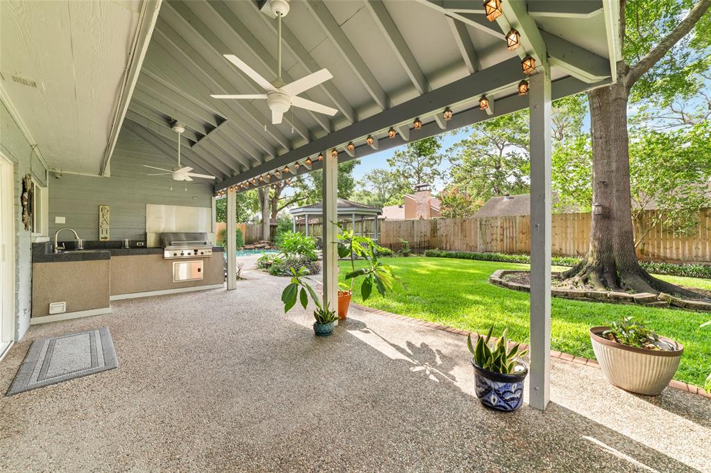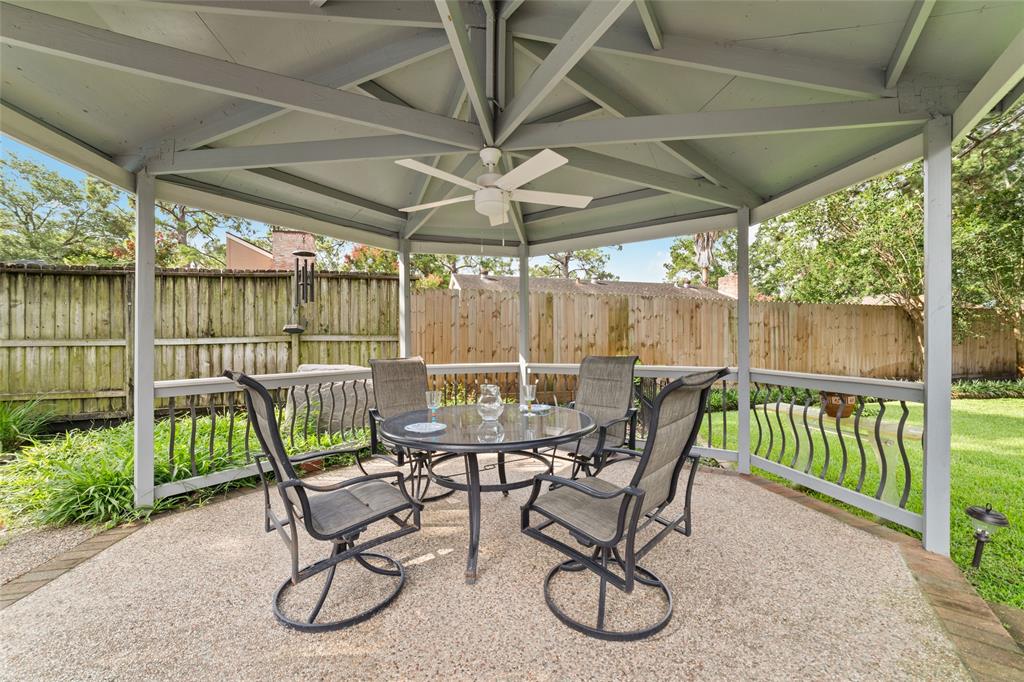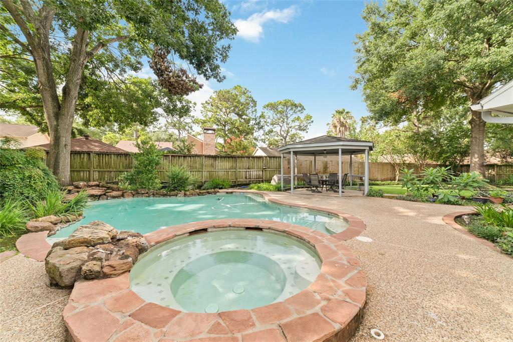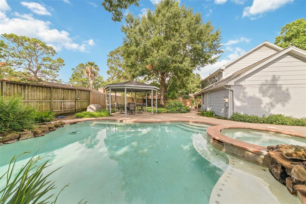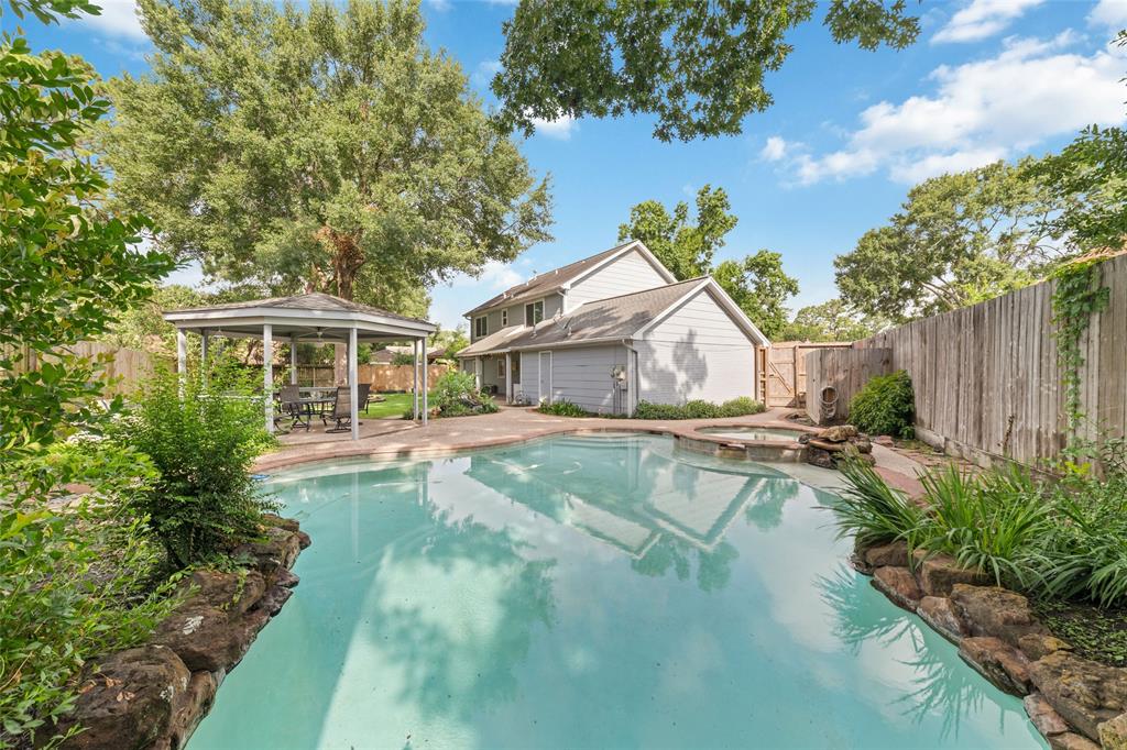 Welcome to this exquisite cul-de-sac home in sought-after Rolling Fork. Remodeled in 2015, this home features a downstairs primary suite, living, dining, & kitchen. Upstairs, discover a large game/flex room, 2 bedrooms, a bath, & a secret flex room tucked within one of the bedrooms. Your backyard oasis, boasts a heated pool & spa added in 2002, an outdoor kitchen, covered patio & charming gazebo shaded by majestic mature trees & a Smart Sprinkler System for effortless maintenance. The primary bathroom was remodeled in '22. A whole-home plumbing upgrade (PEX piping) & new water heater in '23. Updates in 2025 include new ceiling fans in the living room & outdoors, upgraded electrical to gazebo, new outdoor meter can, & integrated wireless smoke/carbon monoxide detectors. This home has never flooded! Included are 2 refrigerators, washer & dryer, kitchen TV, & outdoor furniture. BRAND NEW 30-YEAR ROOF WAS JUST COMPLETED ON JUNE 28th, 2025!
