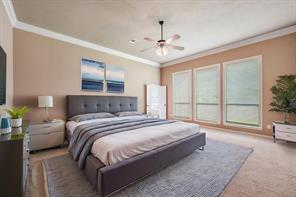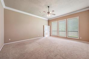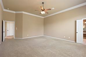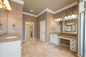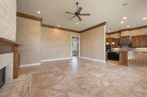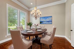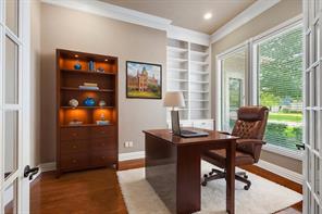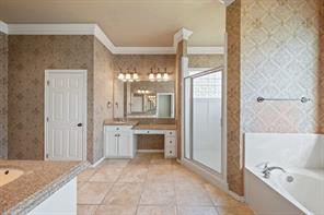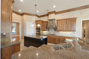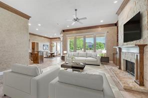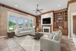 Stunning custom-built Mariott home in a quiet cul-de-sac in sought-after Pebble Creek, offering nearly 3,500 sq. ft. of elegant, comfortable living. This 4-bedroom, 3.5-bath home features a spacious great room with soaring ceilings, stone fireplace, custom built-ins wired for surround sound, and tile and wood flooring. The gourmet kitchen boasts granite countertops, tumbled stone backsplash, island with prep sink, and flows into the breakfast nook and dining areas. Large windows fill the space with natural light and offer views of the oversized covered patio and private backyard. The luxurious primary suite includes a spa-like bath with dual vanities and a large walk-in closet with custom built-ins. A split floor plan provides three additional bedrooms, each with walk-in closets. Enjoy a library/game room with floor-to-ceiling bookshelves, an office/study, and ample storage. Pebble Creek offers world-class amenities like a golf course, tennis courts, and scenic trails.