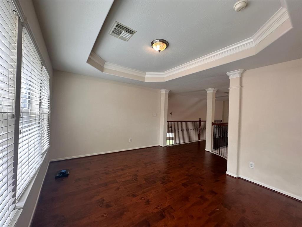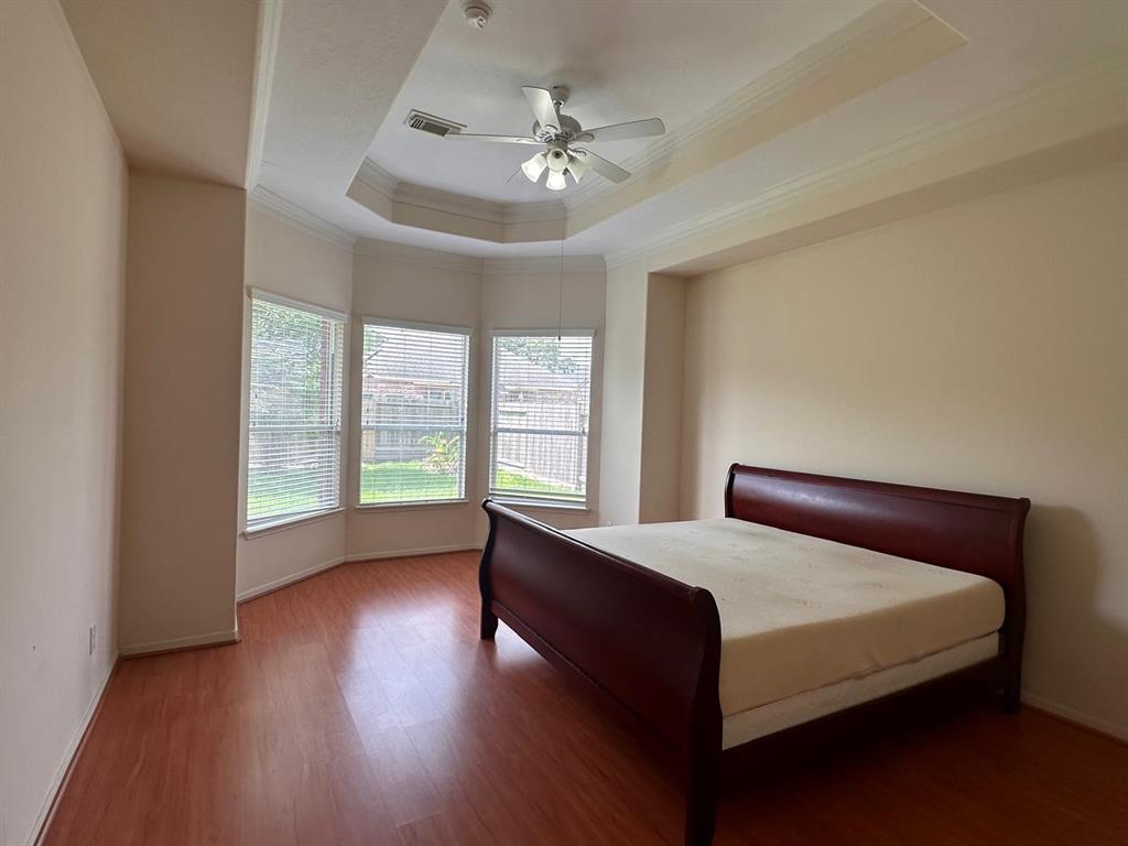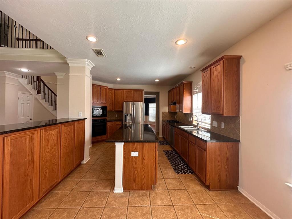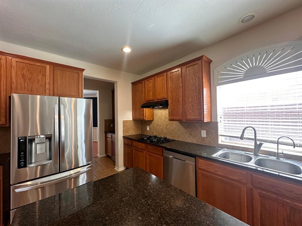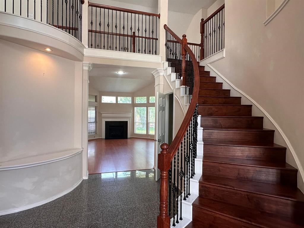 Beautiful 4-Bedroom Home with Big Backyard and Great Location This spacious two-story home has 4 bedrooms, 2.5 bathrooms, and high ceilings that make it feel open and bright. When you walk in, there's a formal dining room that leads into the kitchen, which has a gas cooktop, a large island, and a raised bar area that opens into a cozy den. Right next to the kitchen is a covered patio, perfect for relaxing or hosting friends. The living room has a fireplace that adds a nice, warm touch. The primary bedroom is downstairs with a big bathroom and two walk-in closets that connect to the laundry room — super convenient! Upstairs, there's a game room or study and Jack-and-Jill style bedrooms. Each has its own sink and walk-in closet. You’ll also get a two-car garage, a large driveway, and a big backyard that’s great for BBQs or family time. Easy access to US-59, US-90, Beltway 8, and Highway 6. Zoned to Fort Bend I.S.D. (Dulles schools) - great for families!