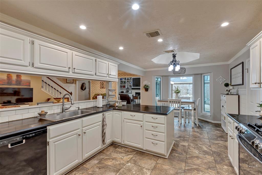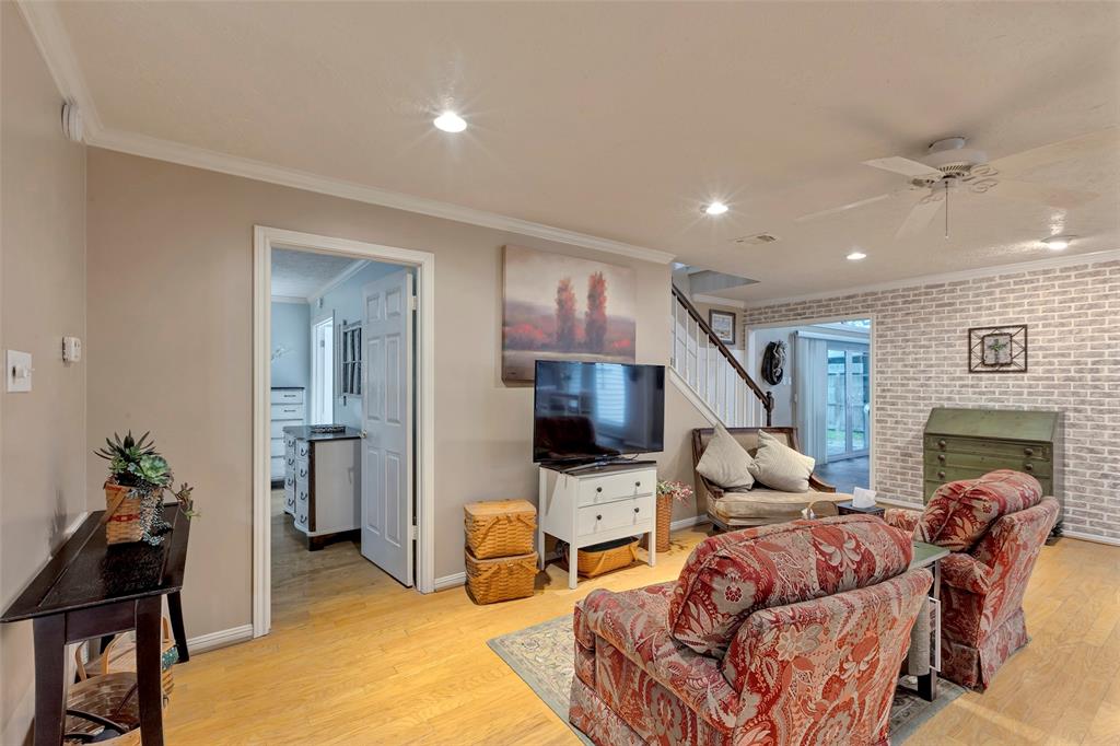 In this gorgeous home, you are surrounded by custom touches that suggest it was professionally designed. Stepping through the door, you're greeted with a spacious entryway that flows directly into the sitting area, artistically finished with a custom faux brick accent wall. This thoughtfully laid out floor plan provides separation between rooms to create intention with each space. From the formal dining room, to the breakfast area and into the generous living room. The oversized primary suite can easily accommodate large furniture without feeling cramped. Both secondary bedrooms on the second floor have their own sitting area for a reading nook or work space. Check out the virtual tour to truly appreciate these spaces! The upper level storage in the garage could be fully enclosed for additional finished space. This home has never flooded and is equipped with a Sentricon pest control system that transfers to the new owner with activation of a maintenance agreement.