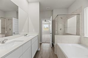 Convenience is key in Ridgeland Hills, a new home community that offers easy access on and off I-45. The Wisteria plan is a 2-story plan with 4 bedrooms, 2.5 baths, family room, and upstairs flex room. It features an impressive 2-story foyer, 1st floor primary suite, and upstairs game room. This house includes white cabinetry, bay window at primary suite, quartz countertops in bathrooms, stainless steel appliances, and sod front and back.