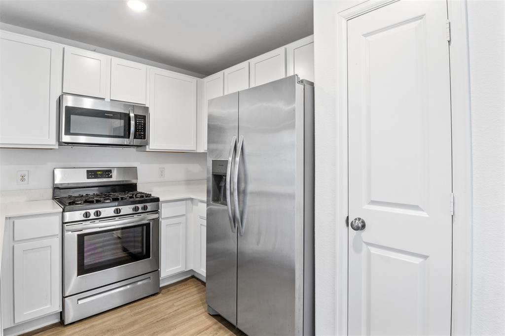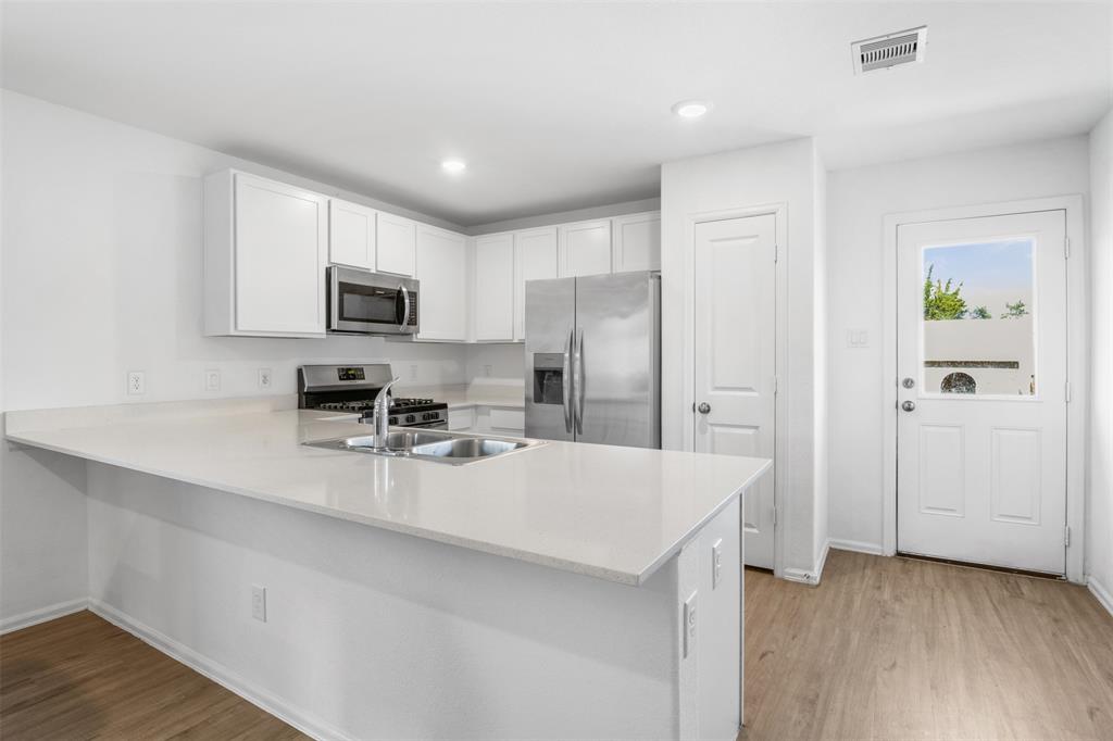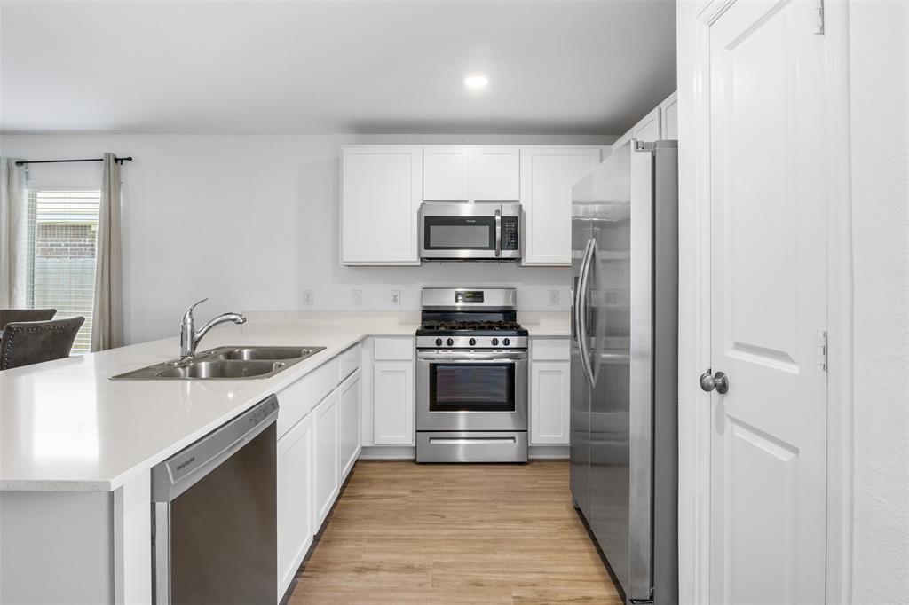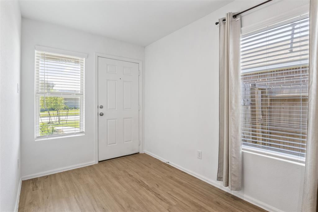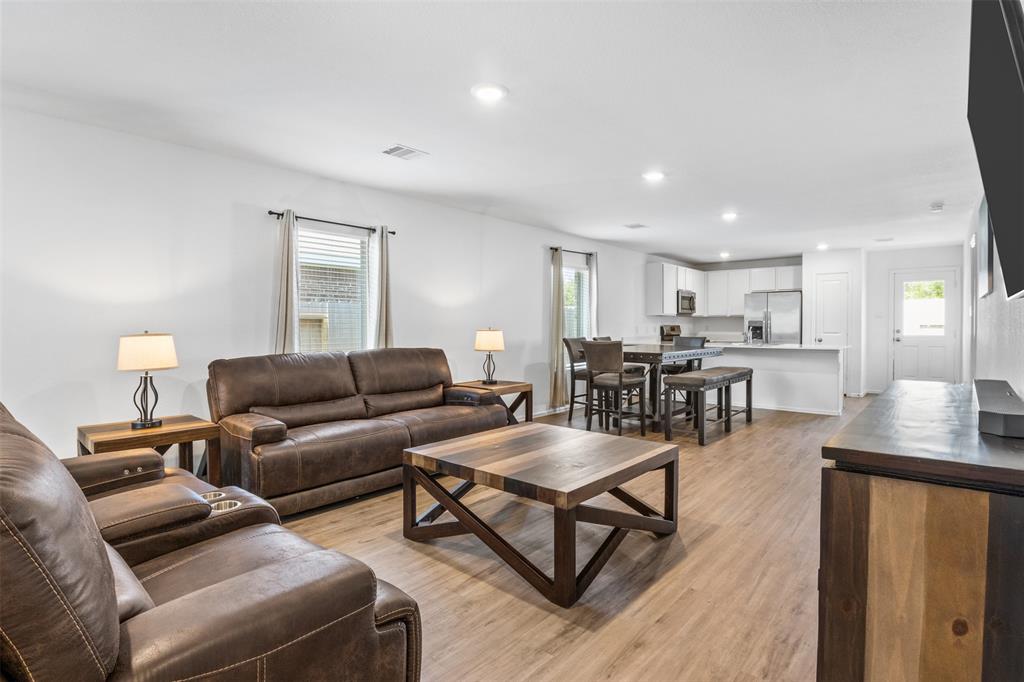 Welcome to this beautiful single-story home located in the Burnet Fields Community! This 3-bedroom, 2-bathroom home offers a spacious and thoughtfully designed layout — and best of all, NO carpet throughout! Enjoy open-concept living with a seamless flow from the family room to the dining area and into the kitchen, which features a convenient breakfast bar — perfect for entertaining or casual dining. The home offers two secondary bedrooms at the front, while the primary suite is tucked away in the back corner for added privacy, including a generous walk-in closet. Outside you have a private fully fenced backyard with no back neighbors, ideal for relaxing or hosting gatherings.