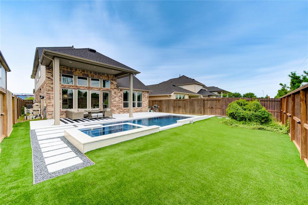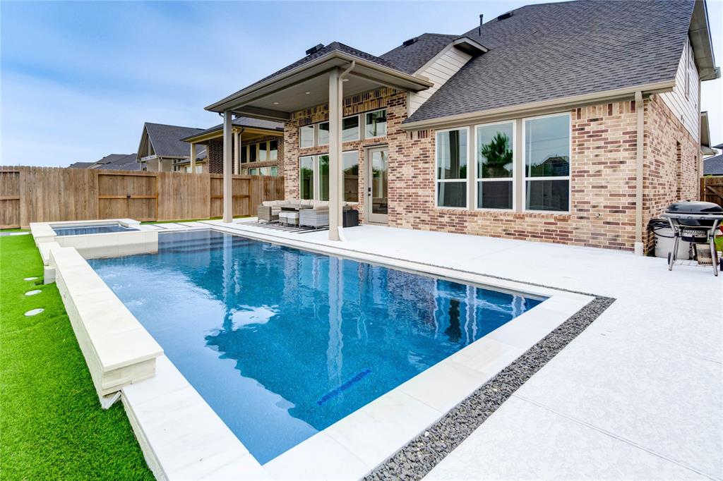 Located in The Terrace at Cinco Ranch, this beautifully maintained 5-bedroom home offers a flexible layout with two bedrooms on the first floor—including a private guest suite that’s ideal for multi-generational living or a quiet home office. The open-concept kitchen features quartz countertops, stainless GE appliances, a walk in pantry, and clean-lined shaker cabinetry. Fridge, washer, and dryer are included for tenant use. High ceilings, ceiling fans, can lights, and walk-in closets throughout—including a spacious primary closet—add comfort and function. Upstairs offers large secondary bedrooms, great storage, and a versatile game room. The living room TV stays, and outdoor furniture can remain for tenant use. The highlight? A modern pool and spa in the oversized backyard—perfect for entertaining or relaxing. Landlord will handle pool maintenance. Zoned to Katy ISD and close to shops, dining, and major roads including 1093/Westpark, 99, and I-10