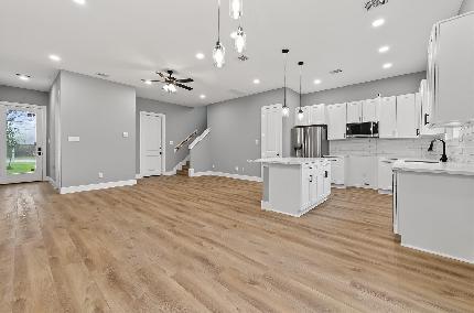 Welcome to your brand new dream home! This 2 story 3 bedroom 2.5 bath, 2 car garage home located just 15 minutes from downtown Houston. Super LOW TAX RATE! This beautifully designed residence offers easy access to major freeways, shopping centers, and a nearby neighborhood park. Step inside to an abundance of natural light, soaring 10’ plate-height ceilings, and thoughtful lighting throughout, including recessed can lighting in the kitchen, 3-bulb vanity lights at bathroom sinks, fluorescent lighting in the primary closet, and ceiling fans in all bedrooms and the living area. The open-concept kitchen features a spacious island, tile flooring, and a stylish tiled backsplash—perfect for everyday living and entertaining. Enjoy year-round comfort and energy efficiency double-pane Low-E 366 vinyl windows, and a 16-SEER Lennox HVAC system. This home combines modern comfort, energy efficiency, and a prime location—don’t miss your opportunity to make it yours! Call today!