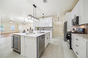 Welcome to 9907 Channel Set Way in Rosharon, TX! This charming 4-bedroom, 2-bath home offers 2,094 sqft of living space on a 5,920 sqft lot. Completely remodeled (better than new) with all new stainless appliances. Enjoy the open floor plan featuring a modern kitchen with an island, perfect for entertaining with outlets and usb. The master suite boasts a walk-in closet for ample storage. Located in the master-planned community of Sterling Lakes at Iowa Colony, you'll have access to miles of paved walking trails, scenic lakes, and a $2.5 million recreation center. Amenities include a playground, tennis courts, basketball pavilion, fitness center, and the community's own waterpark, SplashPad Texas. Relax at the poolside cabana, clubhouse, junior Olympic swimming pool, and splash pad. Plus, a 2-car garage completes this wonderful home. Don't miss the opportunity to live in this vibrant community!
